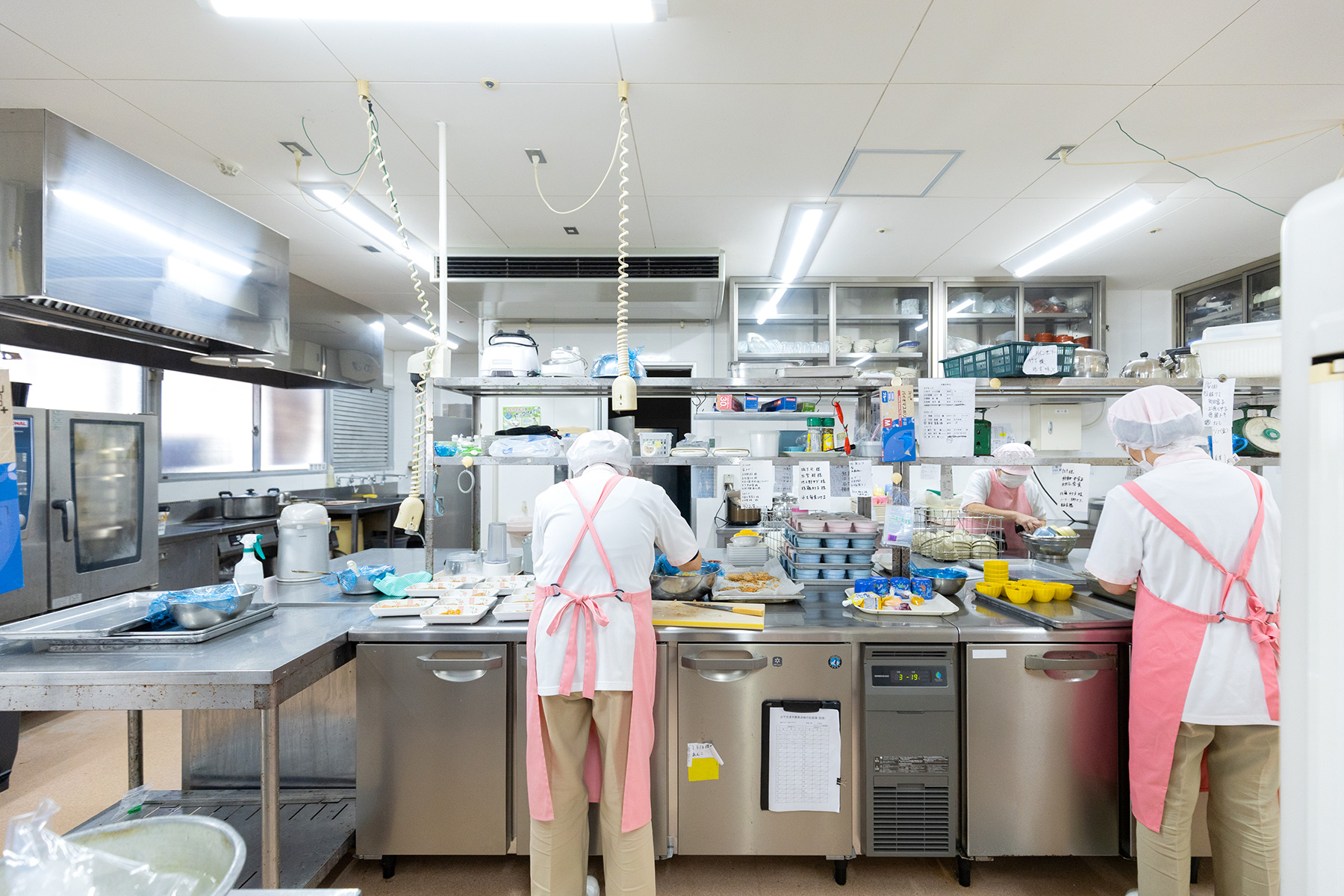 利用者様においしいと心から喜んでいただくためには、利用者様のご意向や介護職員の意見等を積極的にスピーディに取り入れながら、食事サービスに生かしていくことが重要であると考え、当園の食事サービス部門は直営体制をとっています。