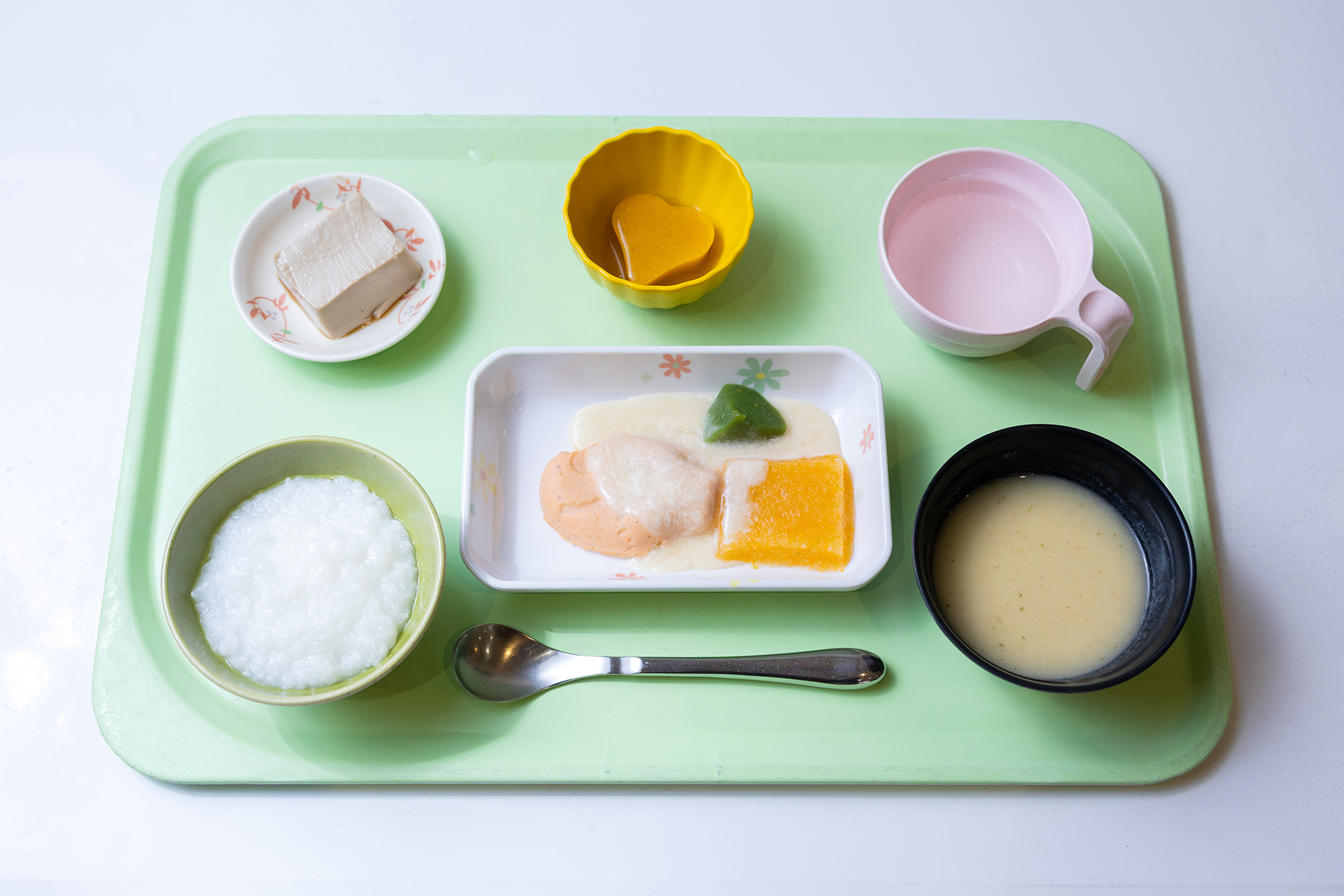 • 普通食を摂取できない方には安全でおいしい食事を提供して食べる楽しみが生きる力につながるように支援いたします。